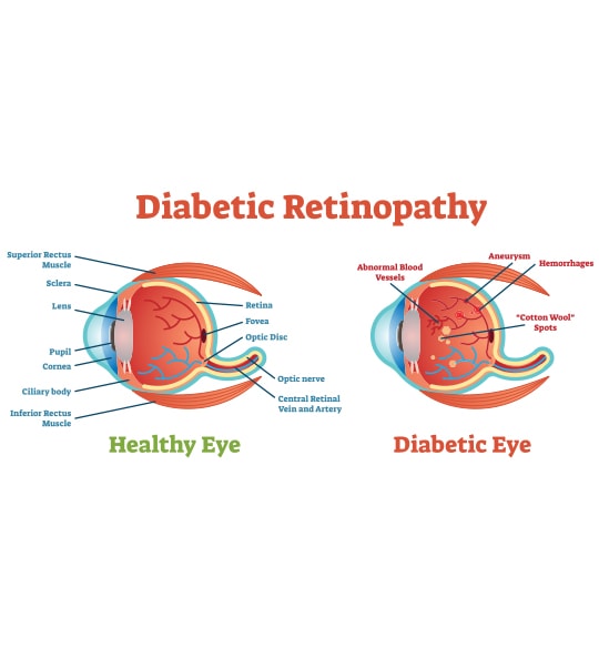Diabetic eye disease can impact multiple parts of the eye. Our diabetic eye exams cover: